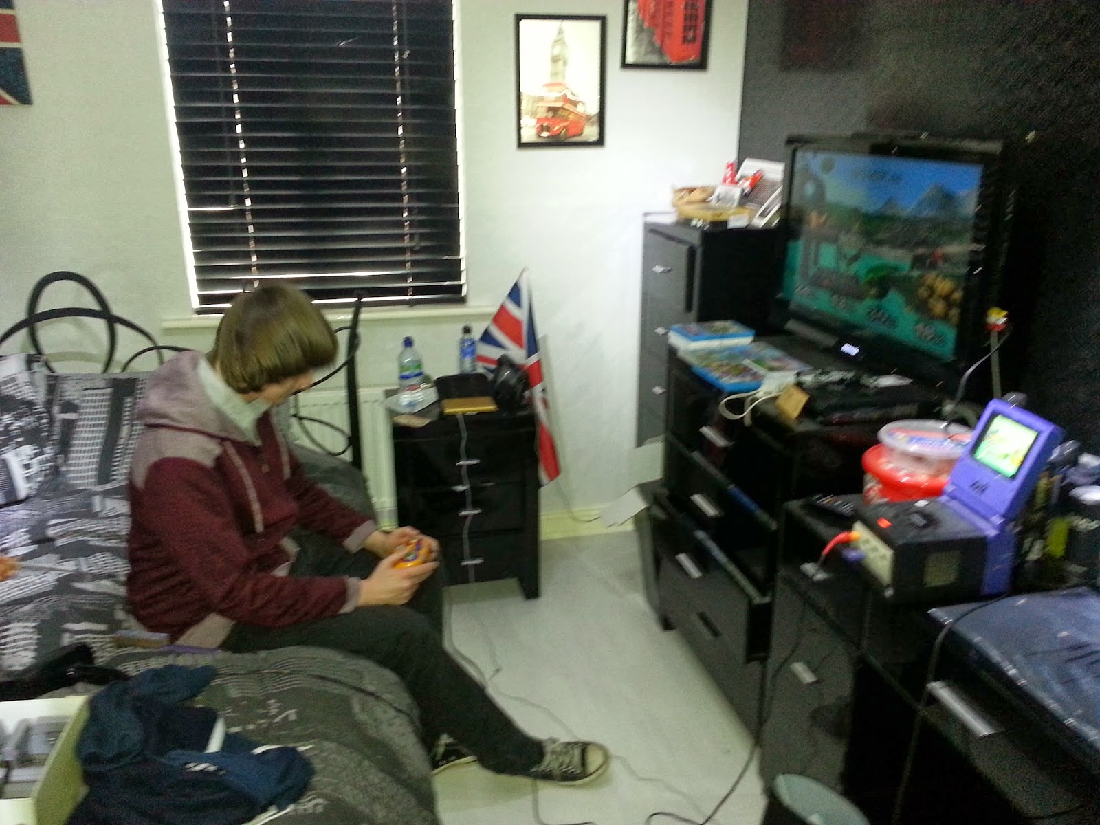 Me and my friend Terry both worked together on this. We firstly began by connecting the Nintendo Gamecube, which I still have, to the TV through the RCA connector cables, then we connected the power cable which has an external PSU to a socket and were able to play the game Super Smash Bros. Melee on the TV and also on the mini screen that came with the Gamecube.